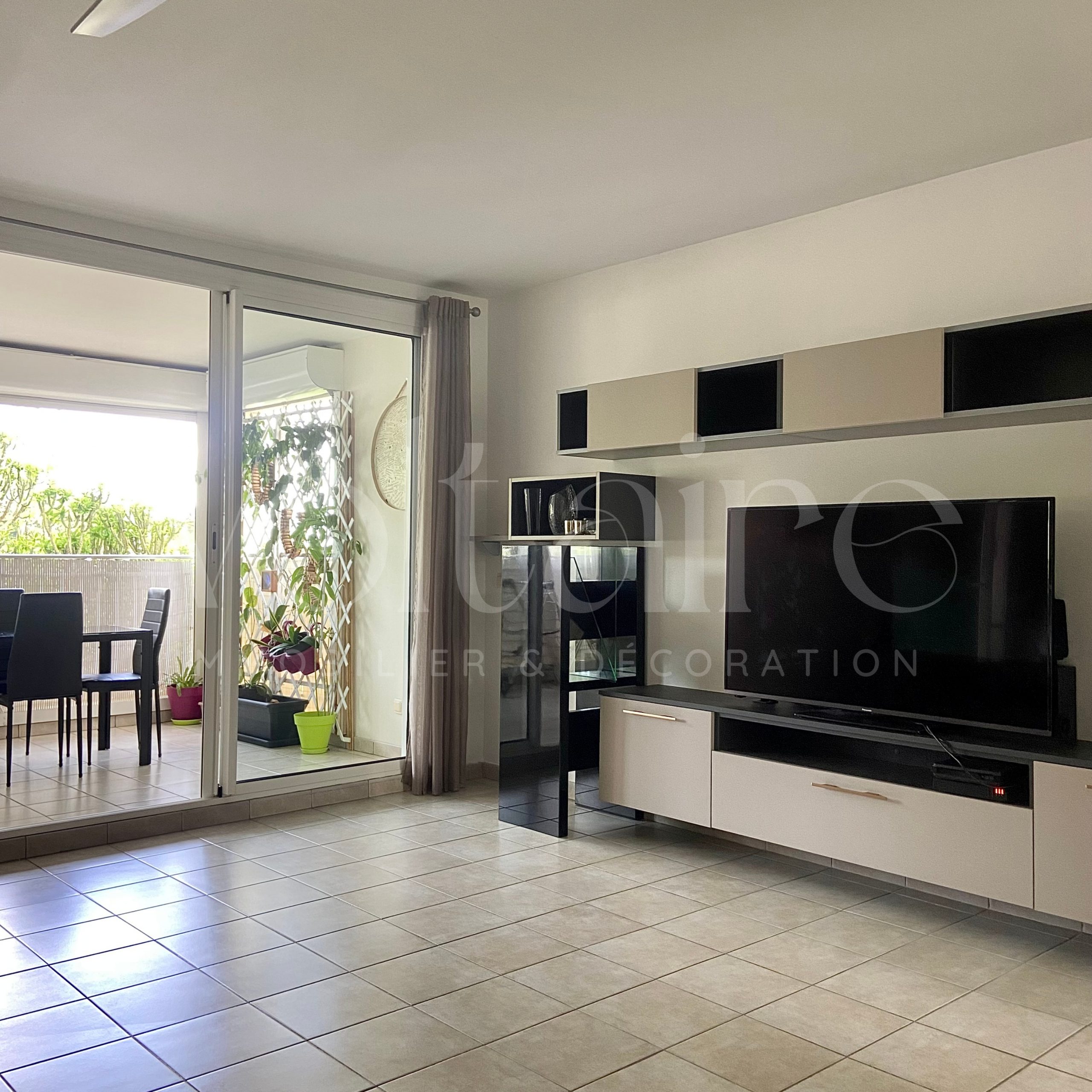 Cet appartement lumineux et en très bon état comprend un vaste séjour avec meuble TV et placard de rangement sur mesure, une cuisine aménagée et équipée (réfrigérateur, plaque, hotte, four combiné), un cellier, deux chambres climatisées disposant chacune d’une salle d’eau privative et de placards intégrés, un WC séparé, et une terrasse de 17 m2 couverte et fermée par des volets roulants électriques offrant un espace extérieur sans vis-à-vis avec une vue dégagée.