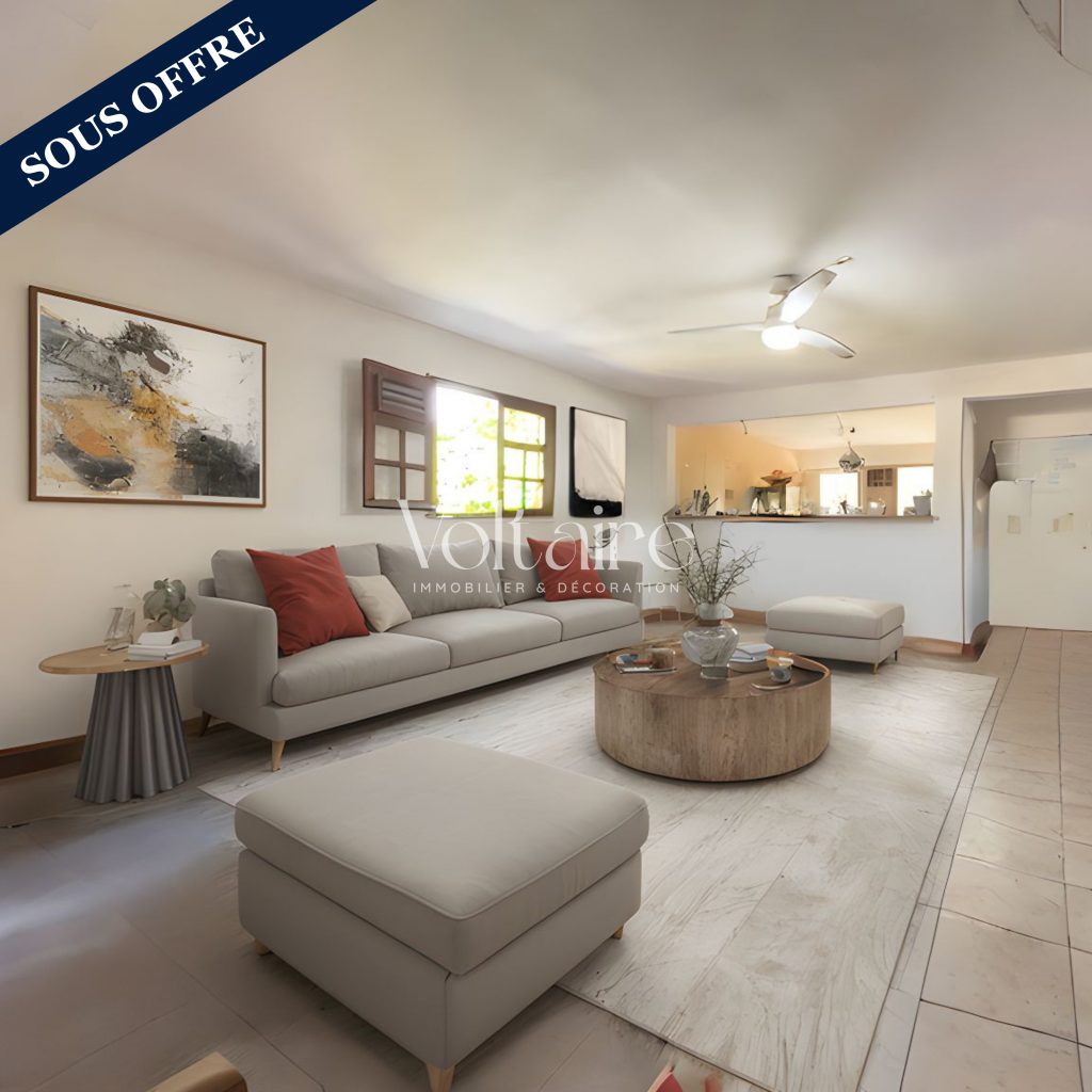 Voltaire Immobilier vous propose à la location cette villa individuelle entièrement meublée de 103,77 m² habitables, complétée par une terrasse de 23 m². Construite en 2018, elle offre un confort moderne et des prestations de qualité. Elle se compose d’une entrée desservant une grande pièce de vie climatisée avec séjour et cuisine ouverte. La cuisine, […]