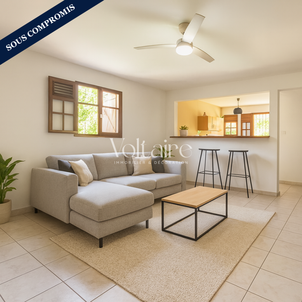 L’agence Voltaire Immobilier vous propose en exclusivité une maison mitoyenne située à Bouillante, offrant 80 m² habitables auxquels s’ajoutent 23 m² de terrasse couverte. Le bien se compose d’un séjour/salle à manger, d’une cuisine séparée, de deux chambres, ainsi qu’une salle d’eau avec WC. Des combles aménageables viennent compléter le potentiel de la maison. Édifiée […]