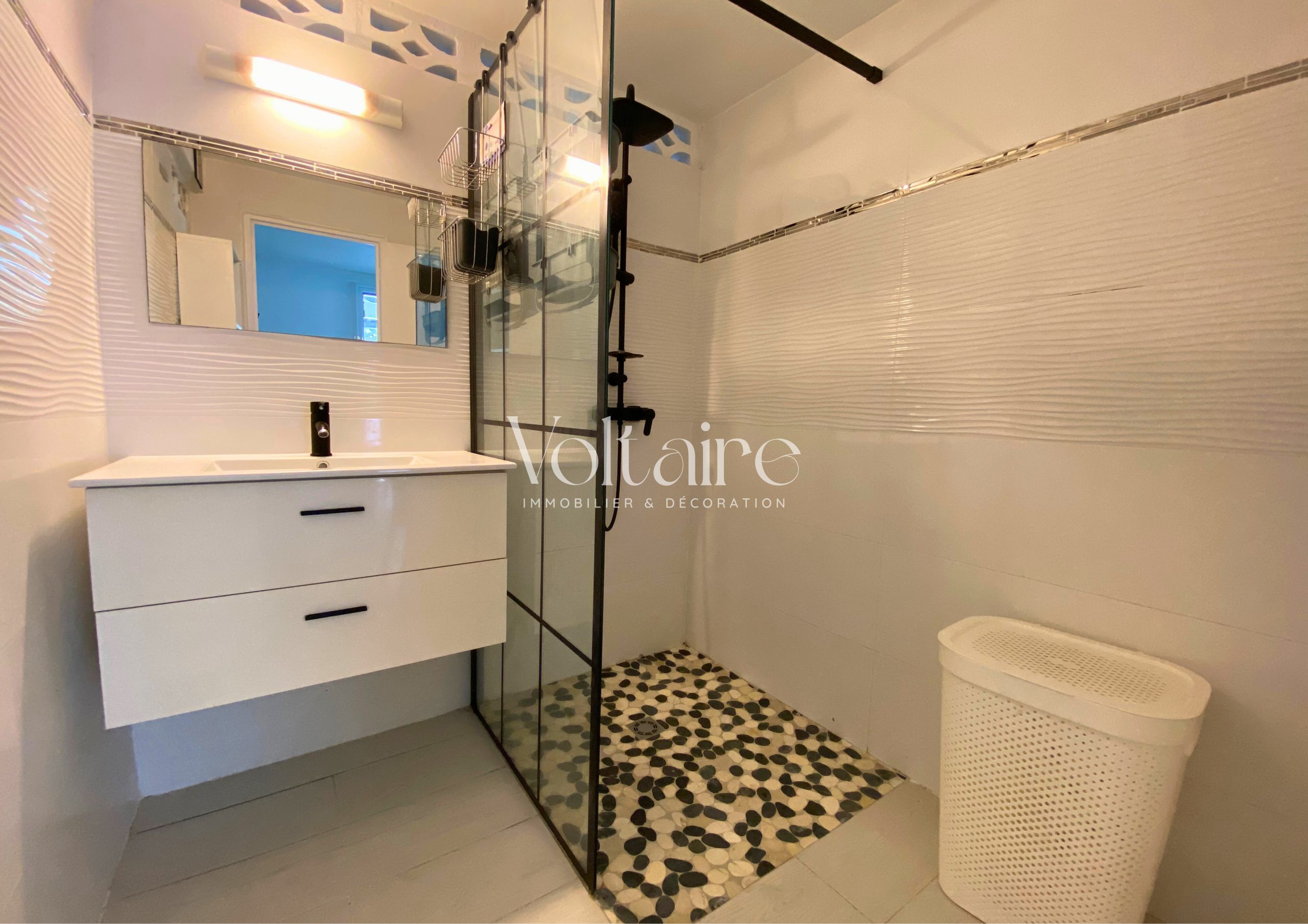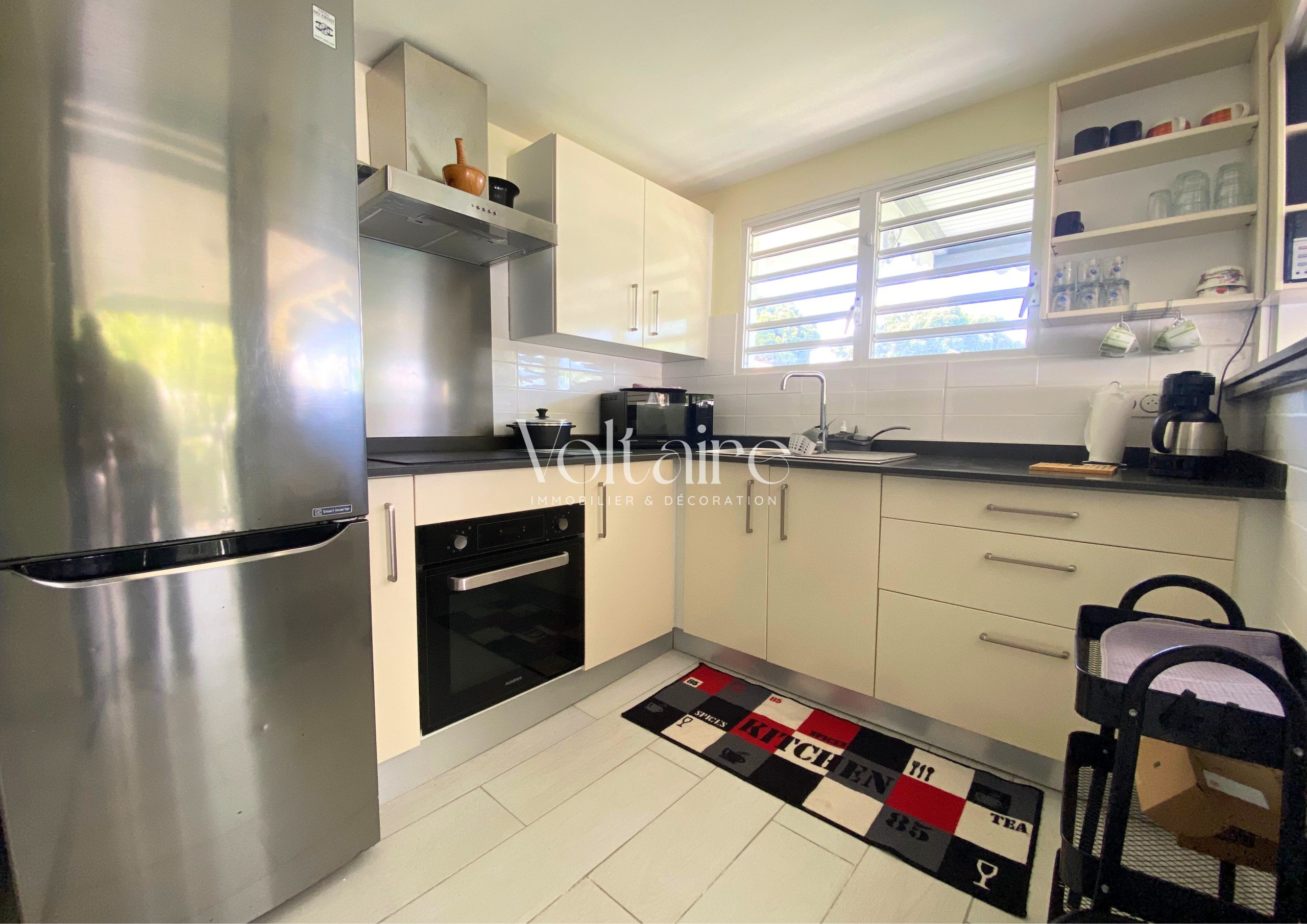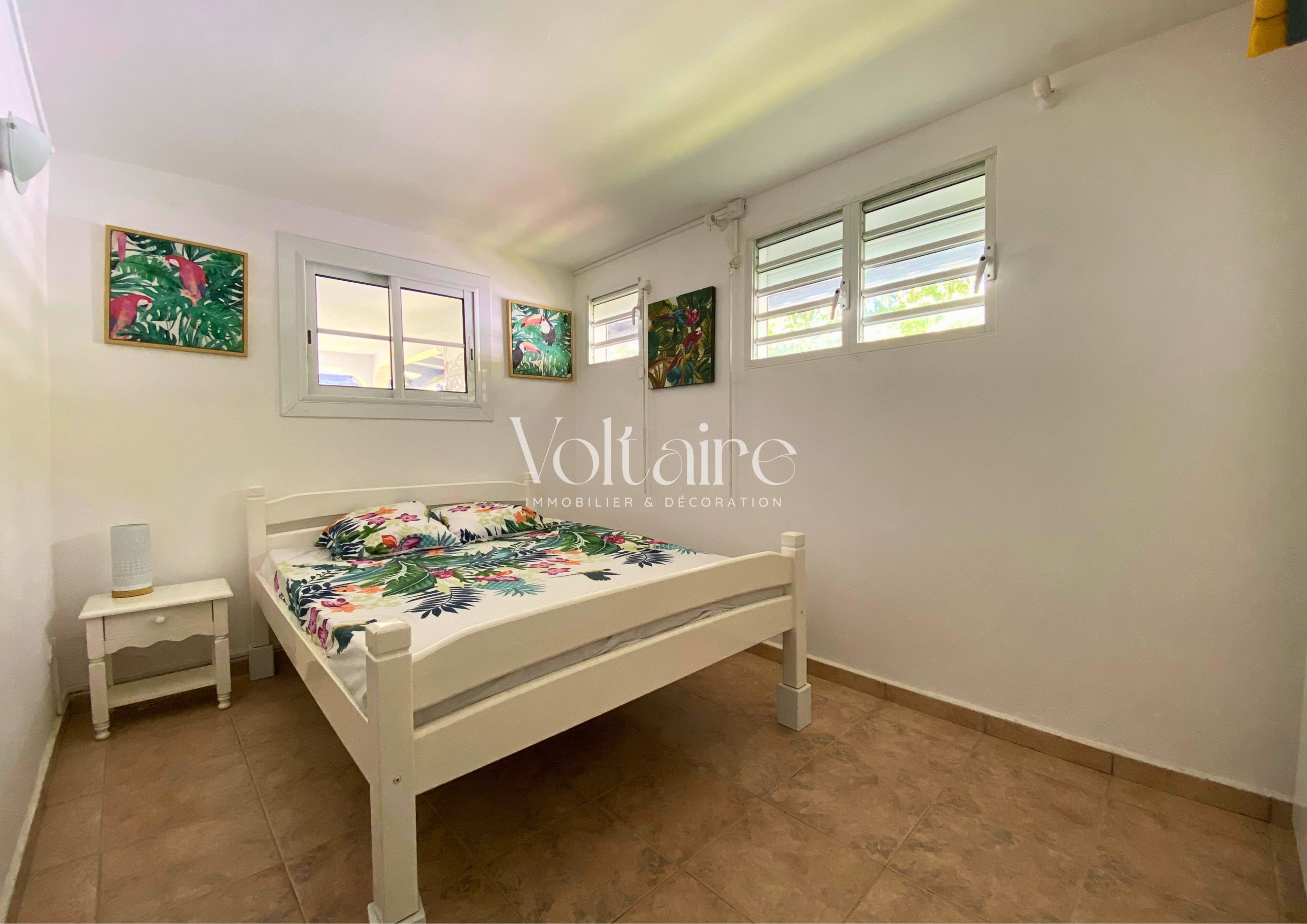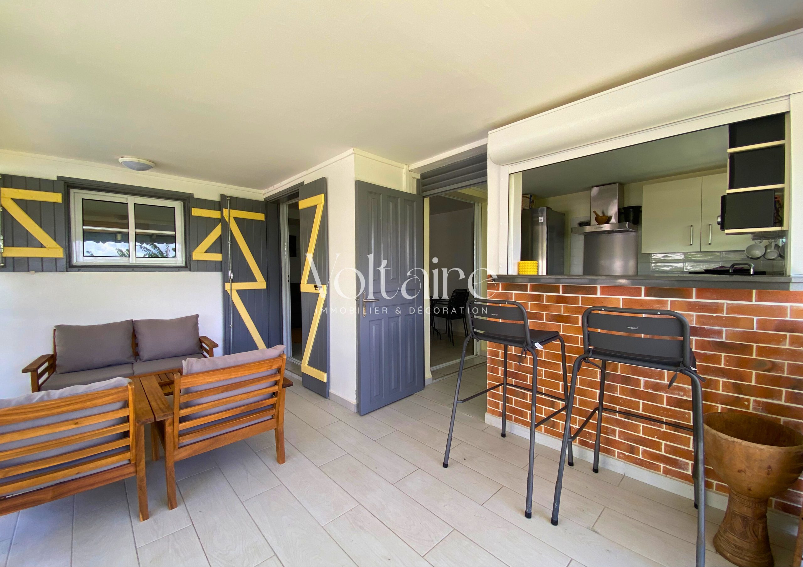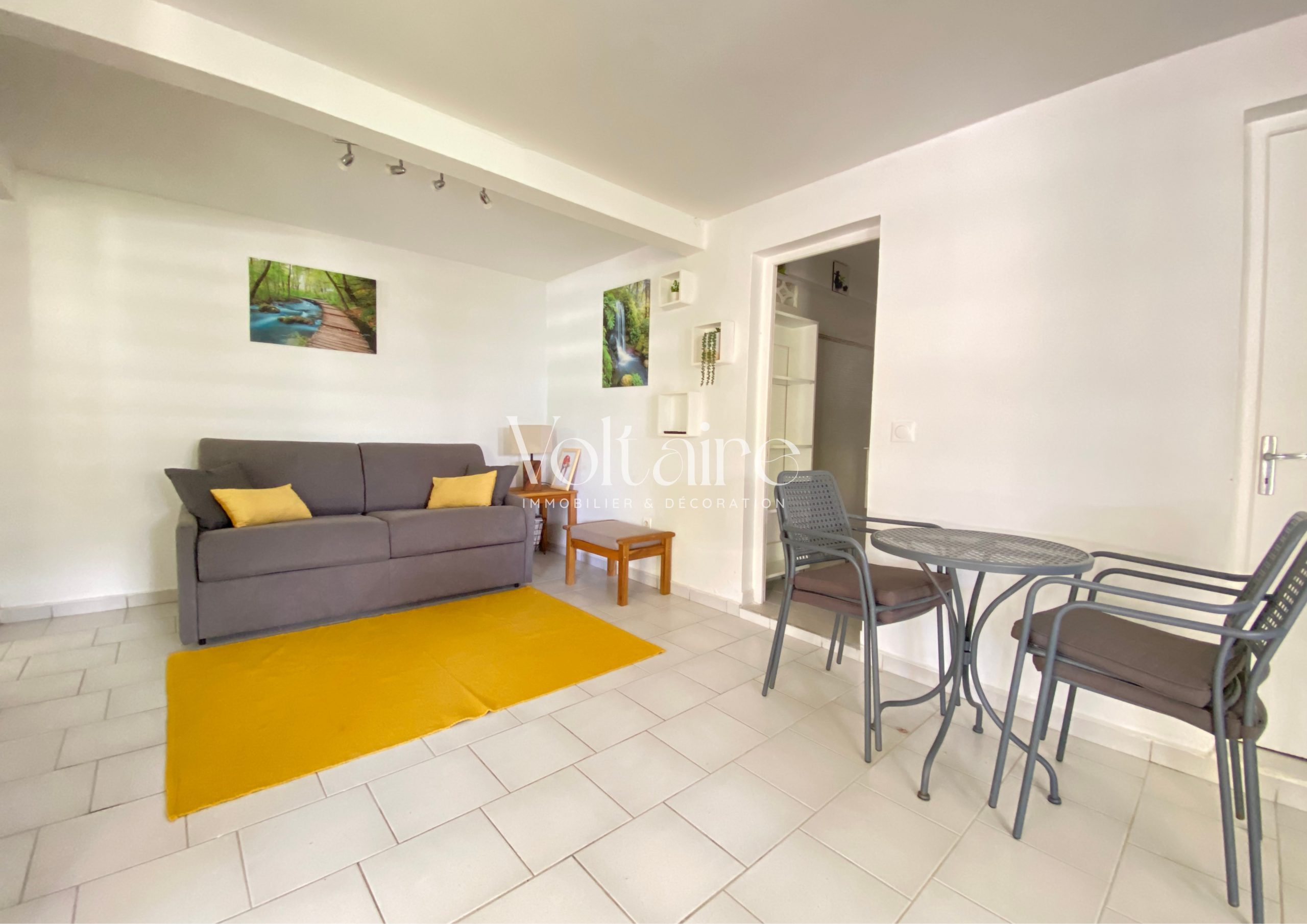 L’agence Voltaire Immobilier vous propose à la location un charmant bas de villa entièrement meublé, avec accès à une piscine. Cet appartement, d’une superficie totale de 48,50 m², se compose d’une terrasse aménagée avec salon d’extérieur, d’une cuisine équipée (réfrigérateur, four, micro-ondes, cafetière, etc.), d’un séjour avec canapé, télévision et table à manger, d’une chambre climatisée avec lit double et armoire, d’une salle d’eau récemment rénovée et d’un WC séparé.