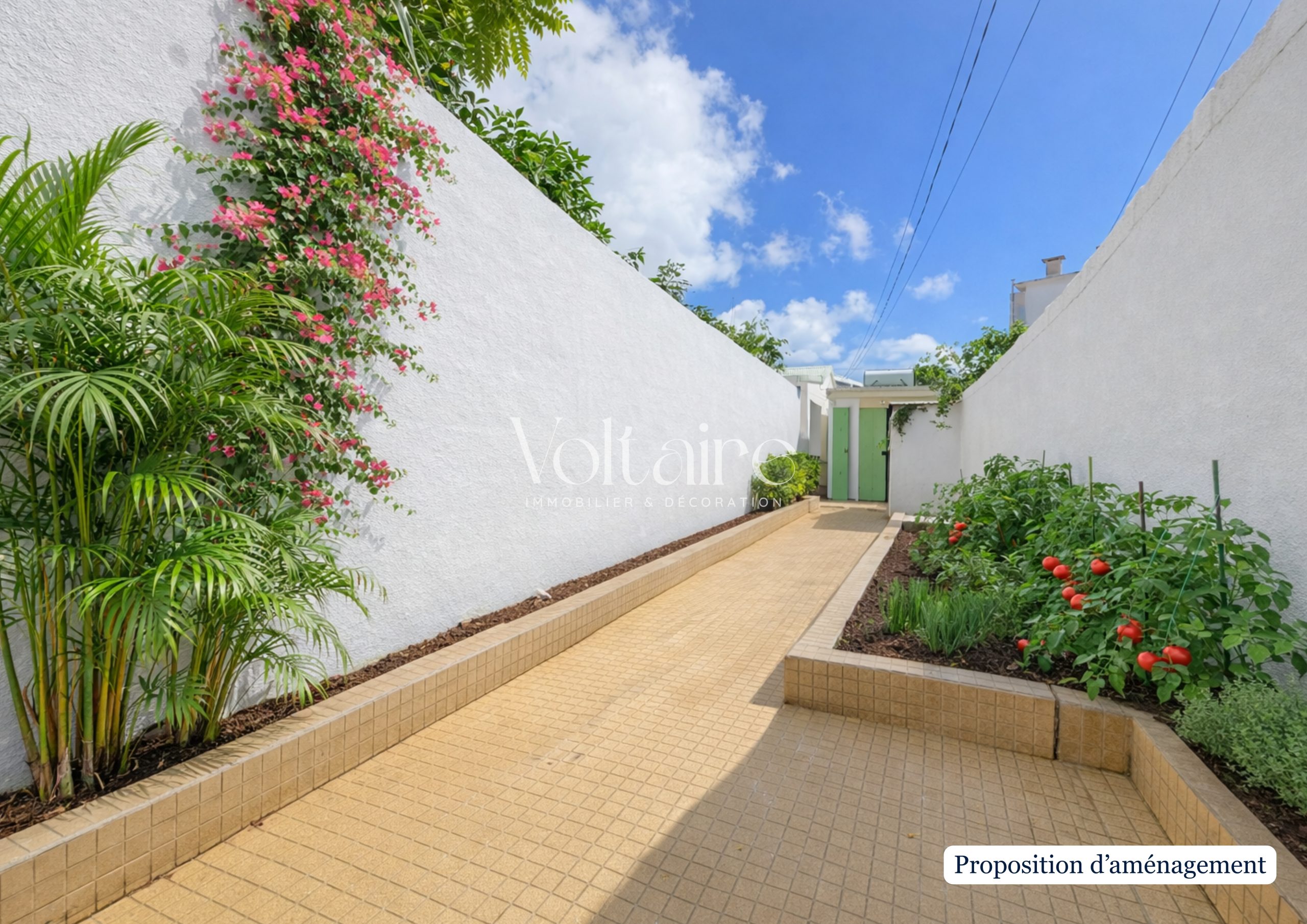 Implantée sur un terrain de 153 m² entièrement clôturé et muré, la propriété bénéficie d’un portillon à l’entrée, offrant un espace sécurisé et à l’abri des regards.