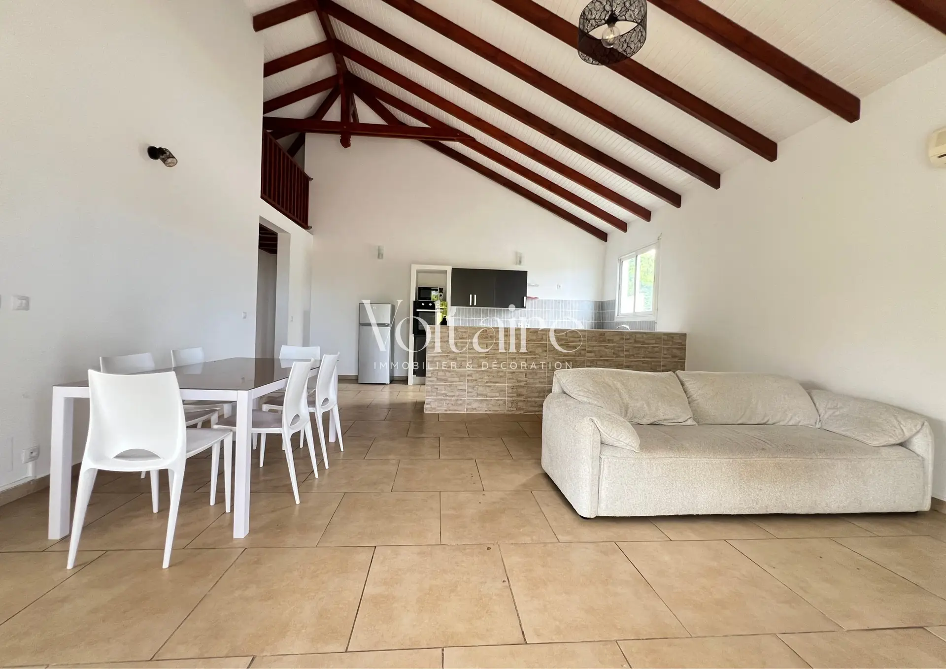 Voltaire Immobilier vous propose à la location, une maison meublée T4 située sur les hauteurs de Baillif, dans un lotissement calme et résidentiel.